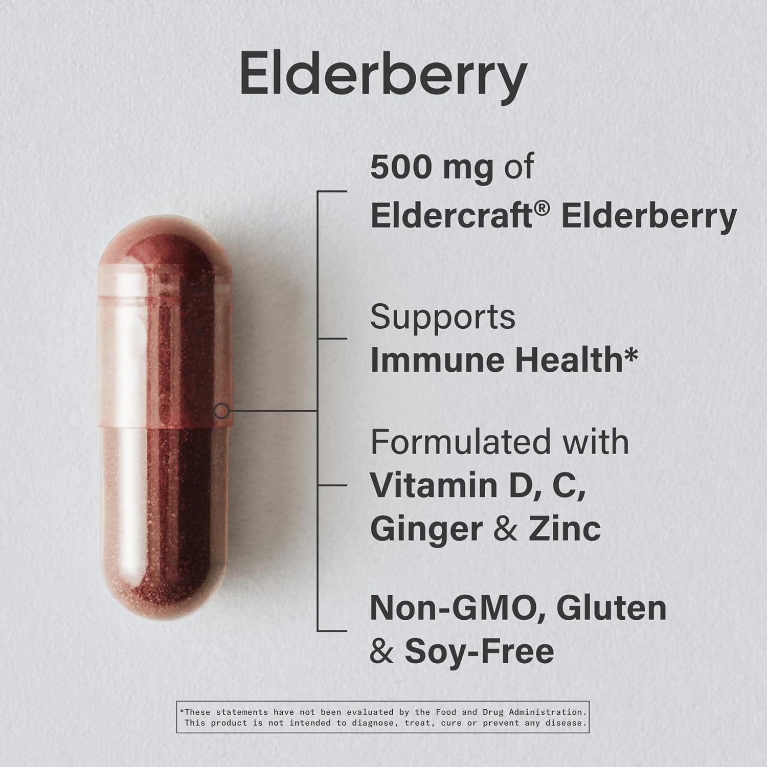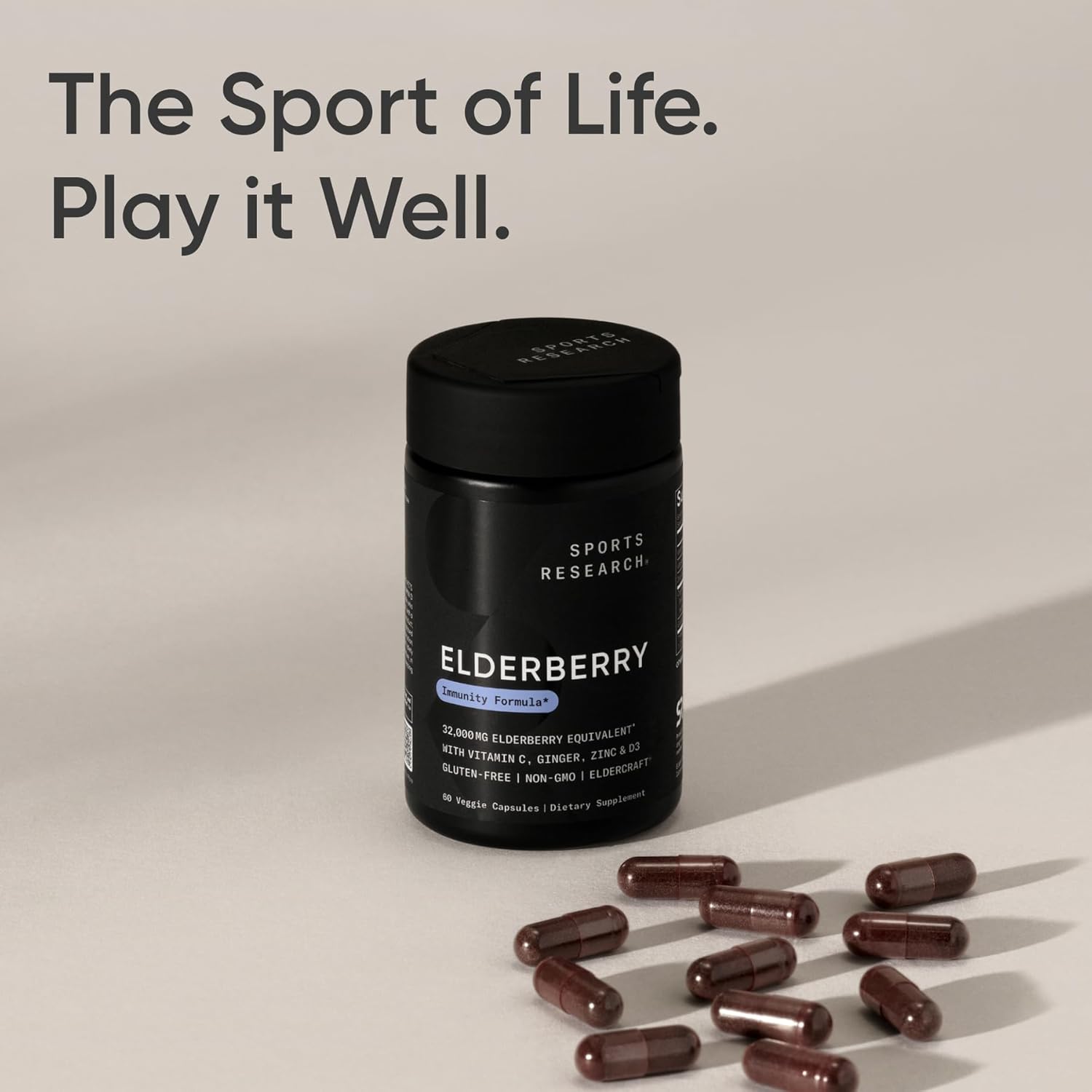 Sports Research® Elderberry Immune Support with Zinc, Ginger, Vitamin C & D3 – Vegan Friendly · Non-GMO · Gluten Free – 60 Veggie Capsules