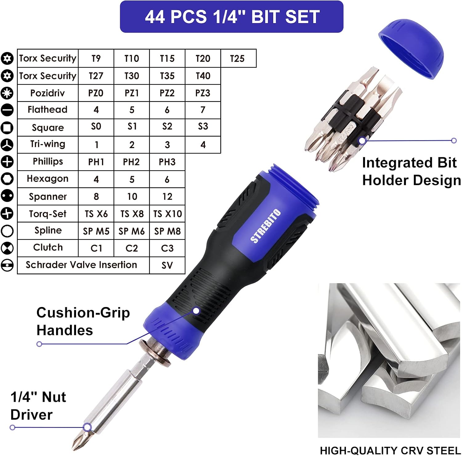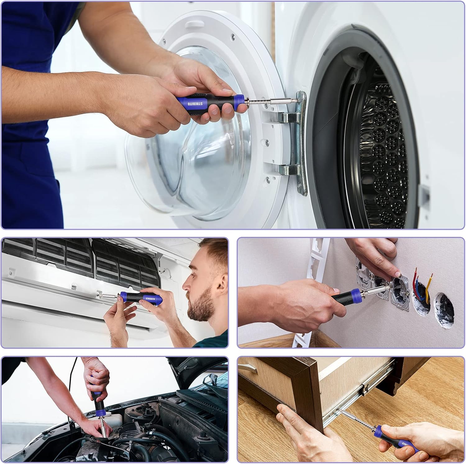 • Includes multi-bit screwdrivers and nut drivers
