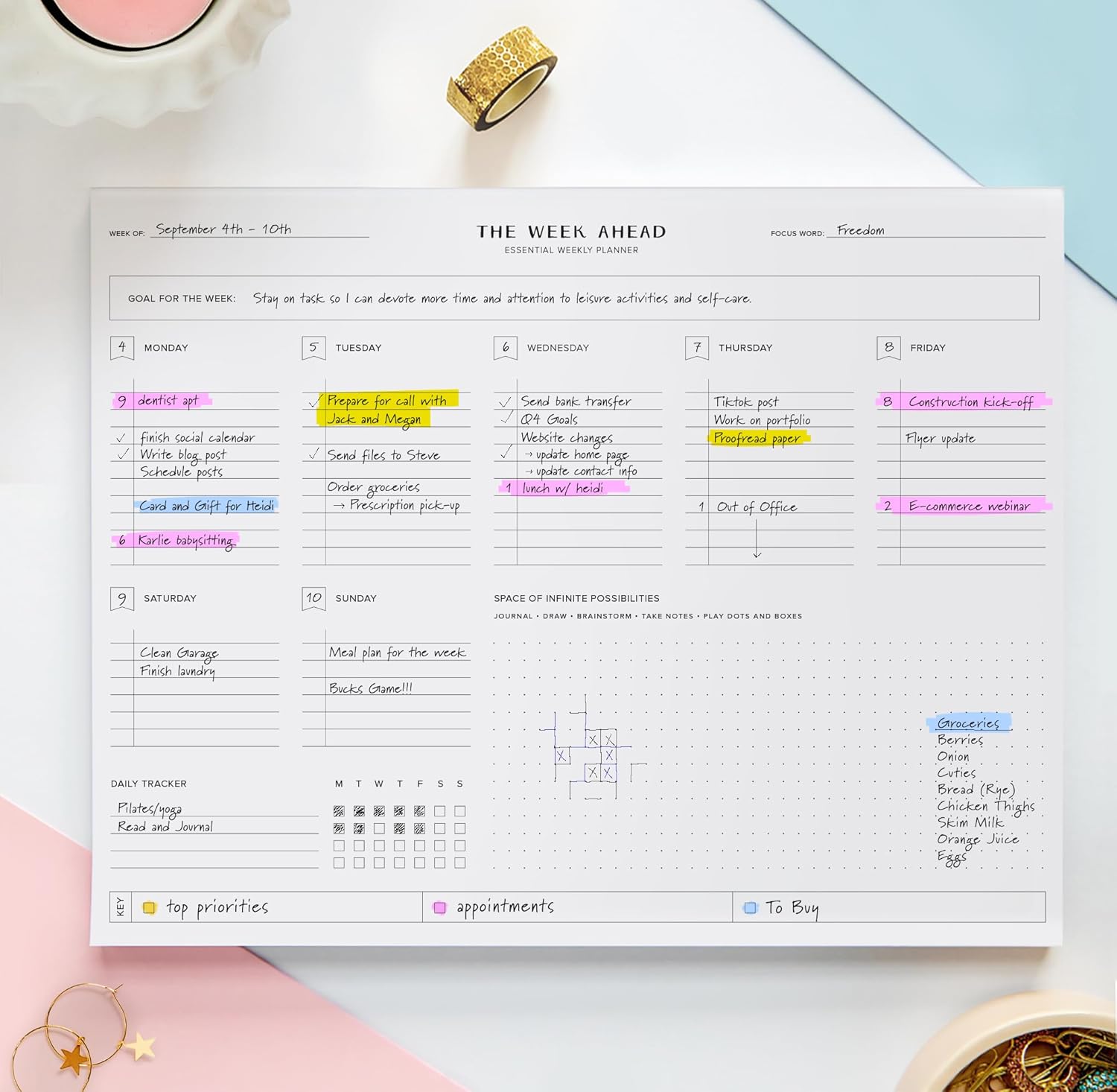ThreeKin Essential Weekly Planner – 8.5″x11″, 52 Tear-Off Sheets, Motivational Design, Goal Setting, Time Management, To-Do Lists, Productivity Organizer, Perfect for Home, Office, Students, Work
