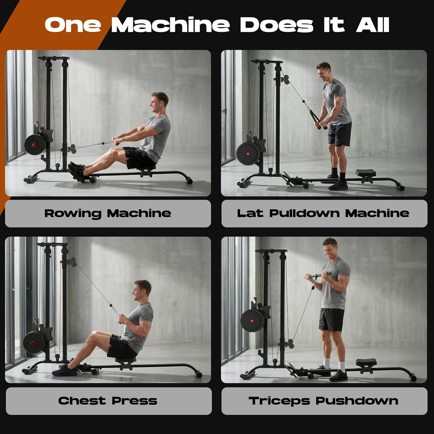 Enjoy a 2 in 1 functional trainer and rowing machine.