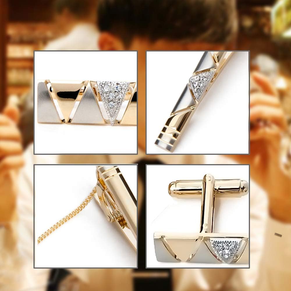 Two Tone Cufflinks and Tie Clip Set with Gift Box and Greeting Card, Stylish Golden Cufflinks and Tie Clip Gift Set for Men