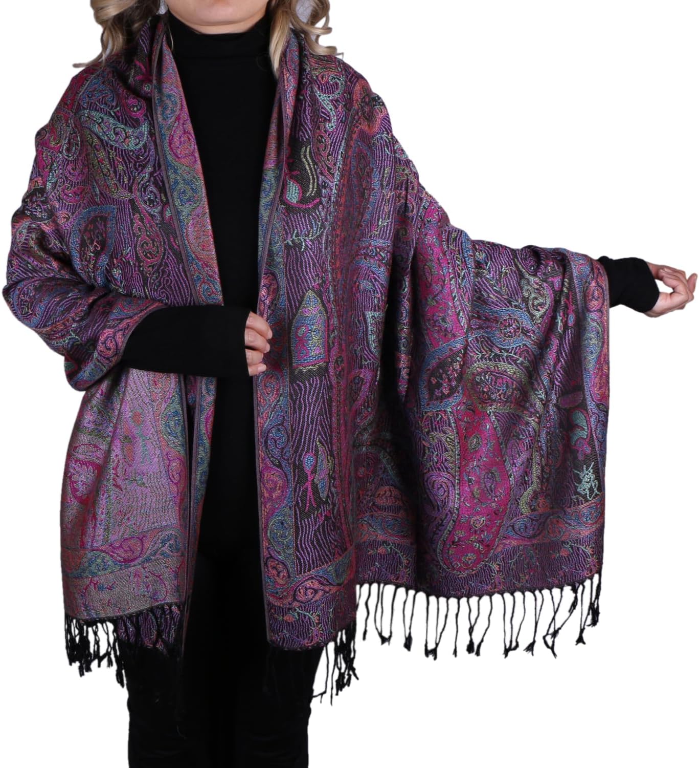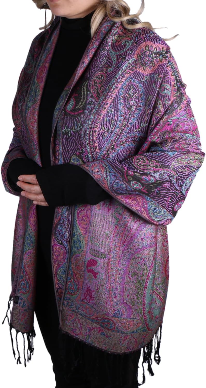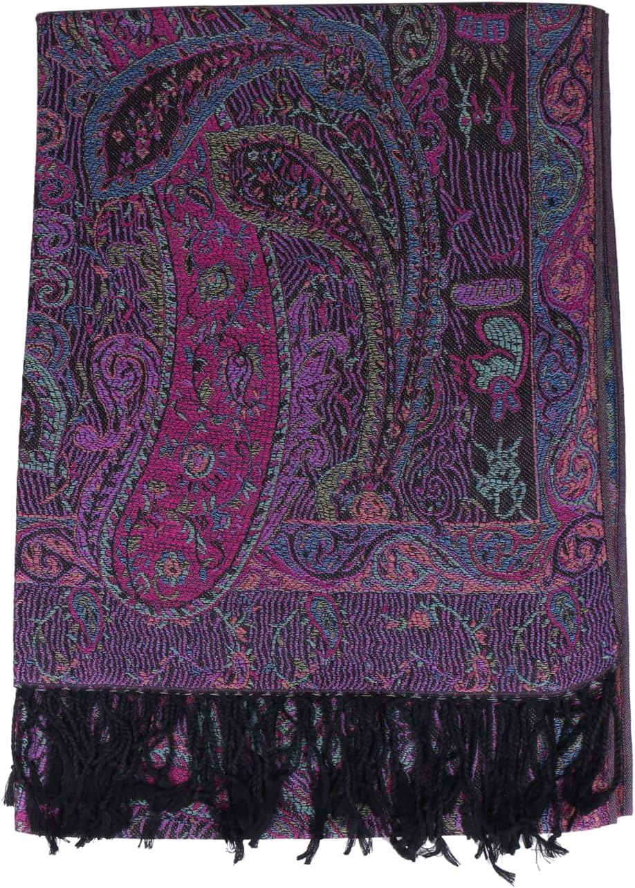 TZ Promise Women Paisley Pashmina Shawl Wrap Colorful Pattern Embroidered Reversible Winter Scarf
