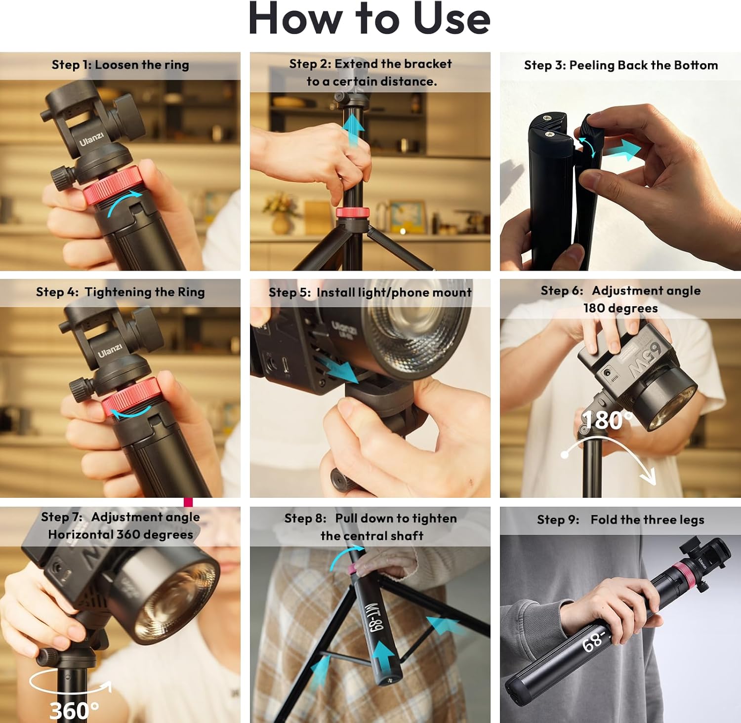The ULANZI MT-89 Extendable Tripod is designed for versatility and convenience, making it an excellent choice for both photography and videography. This aluminum tripod extends up to 82 inches, providing ample height for various shooting angles. It features a 1/4" screw quick release, ensuring easy attachment and detachment of your camera or smartphone.