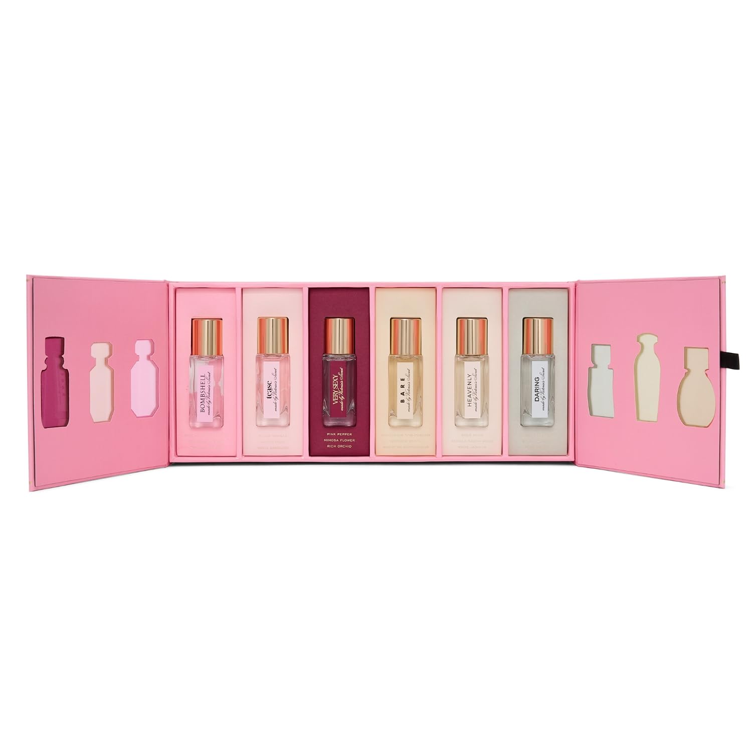 The set includes six different fragrance samples from Victoria's Secret, allowing you to explore a variety of scents.