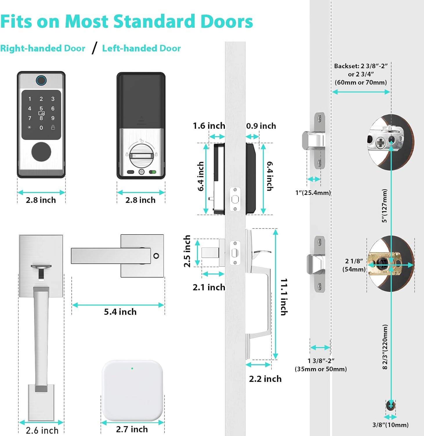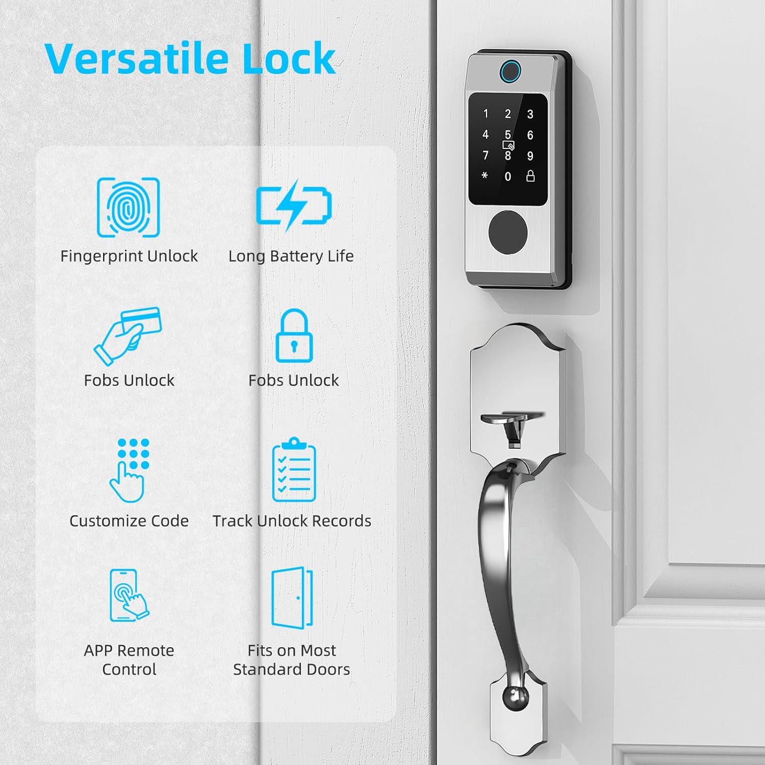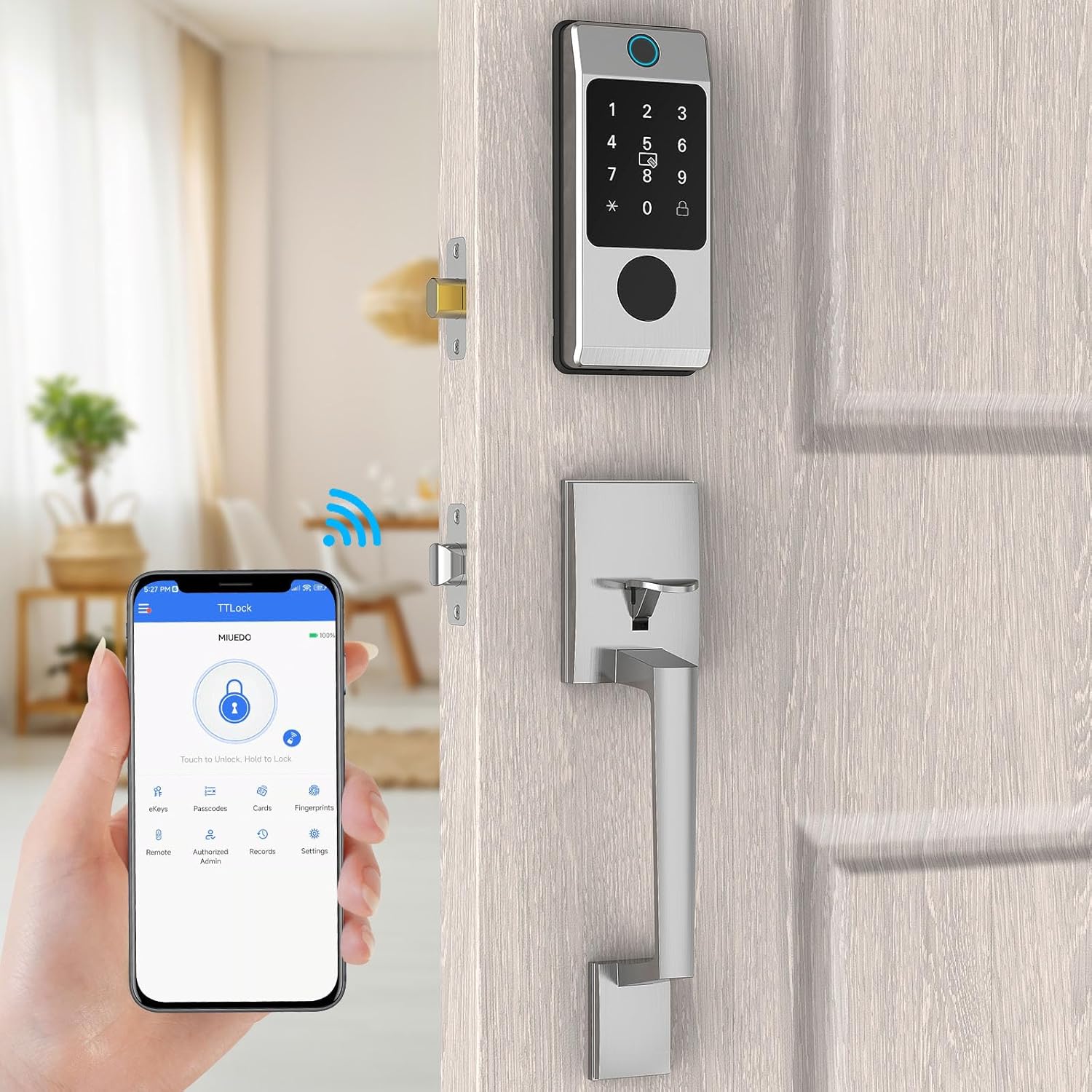 Wi-Fi Smart Deadbolt Lock with Handle Sets, Miuedo Keyless Entry Door Lock for Front Door, Compatible with Alexa & Google Assistant, Auto Locking-Silver