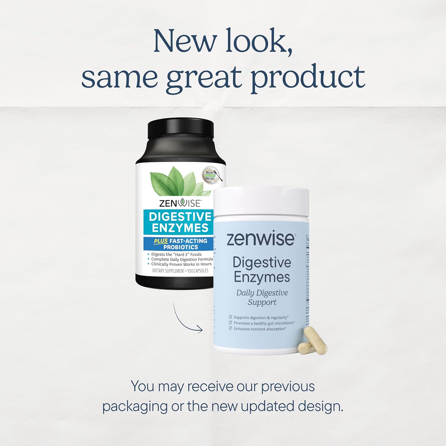 Zenwise Health Digestive Enzymes with Bromelain & Papaya – Multi Enzymes Digestion Supplement with Probiotics & Prebiotics for Gut Health, Gas & Bloating Relief – Men & Women – 60 Vegetarian Capsules